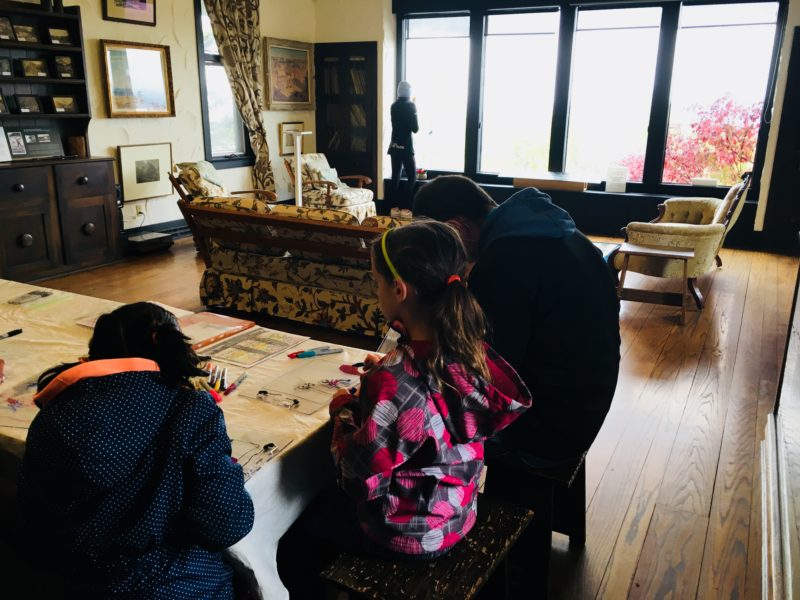 Landscape Tracing was my second time at the Leighton Art Centre during the Alberta Culture Days. Visitors were invited to draw their unique perception of the Foothills landscape either on the window of the Great Room or using transparent clipboard. The addition of colour markers gave a new result to the drawing activities. Here are some images and drawings from the participants.